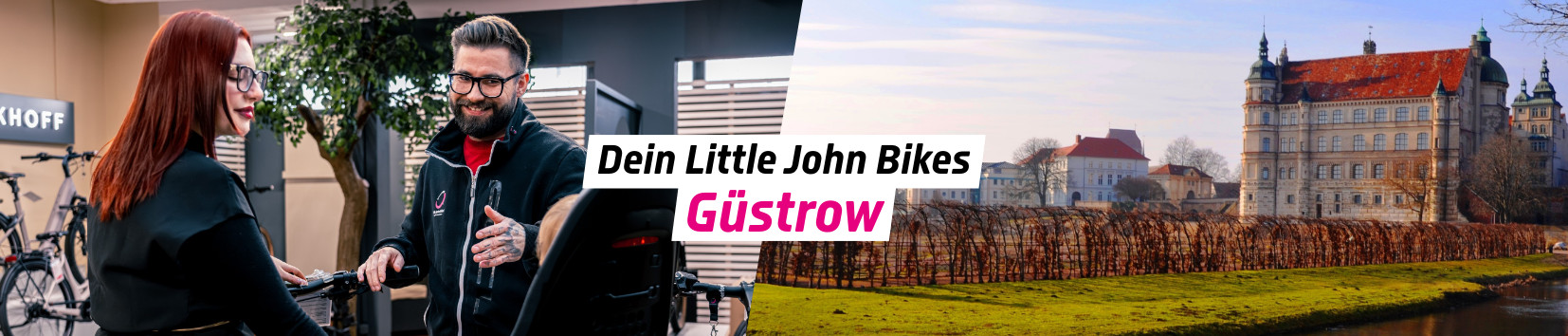 Herzliche Beratung, ein engagiertes Team, eine große Auswahl an Fahrrädern und E-Bikes sowie ein umfassender Service erwarten dich in unserem Little John Bikes Fahrradladen in Güstrow. Als eine von über 60 Filialen deutschlandweit sind wir natürlich auch hier vor Ort für dich da. Ganz gleich, ob du ein Fahrrad für regelmäßige Ausflüge Richtung Ostsee suchst, ein zuverlässiges Gefährt für deinen täglichen Arbeitsweg brauchst oder mit einem Anhänger deinen Vierbeiner auf Touren mitnehmen möchtest, bei uns wirst du garantiert fündig. Unser Angebot umfasst jedoch weit mehr als nur den Kauf eines Fahrrads, denn wir möchten dich langfristig begleiten und unterstützen.
